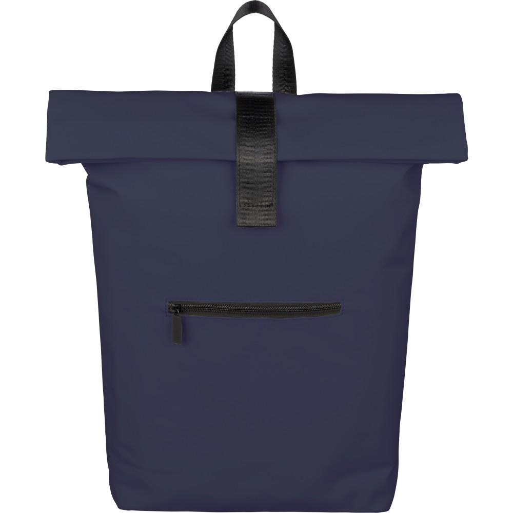 Újrahasznosított PU anyagból készült hátizsák 19 literes űrtartalommal, rolltop záródással és tépőzáras rögzítéssel. Elülső cipzáras zsebbel, 16 hüvelykes laptoprekesszel, 210D újrahasznosított béléssel, állítható szellőző vállpántokkal és felső fogantyúval rendelkezik. A belső címkén újrahasznosított alapanyagra utaló jelölés található.
