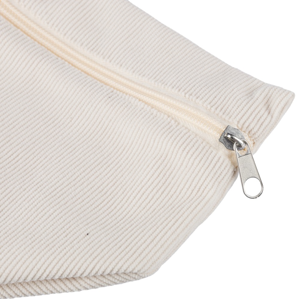 Kordbársony anyagból készült cipzáras kozmetikai táska egy fő rekesszel és biztonságos cipzáras zárással.