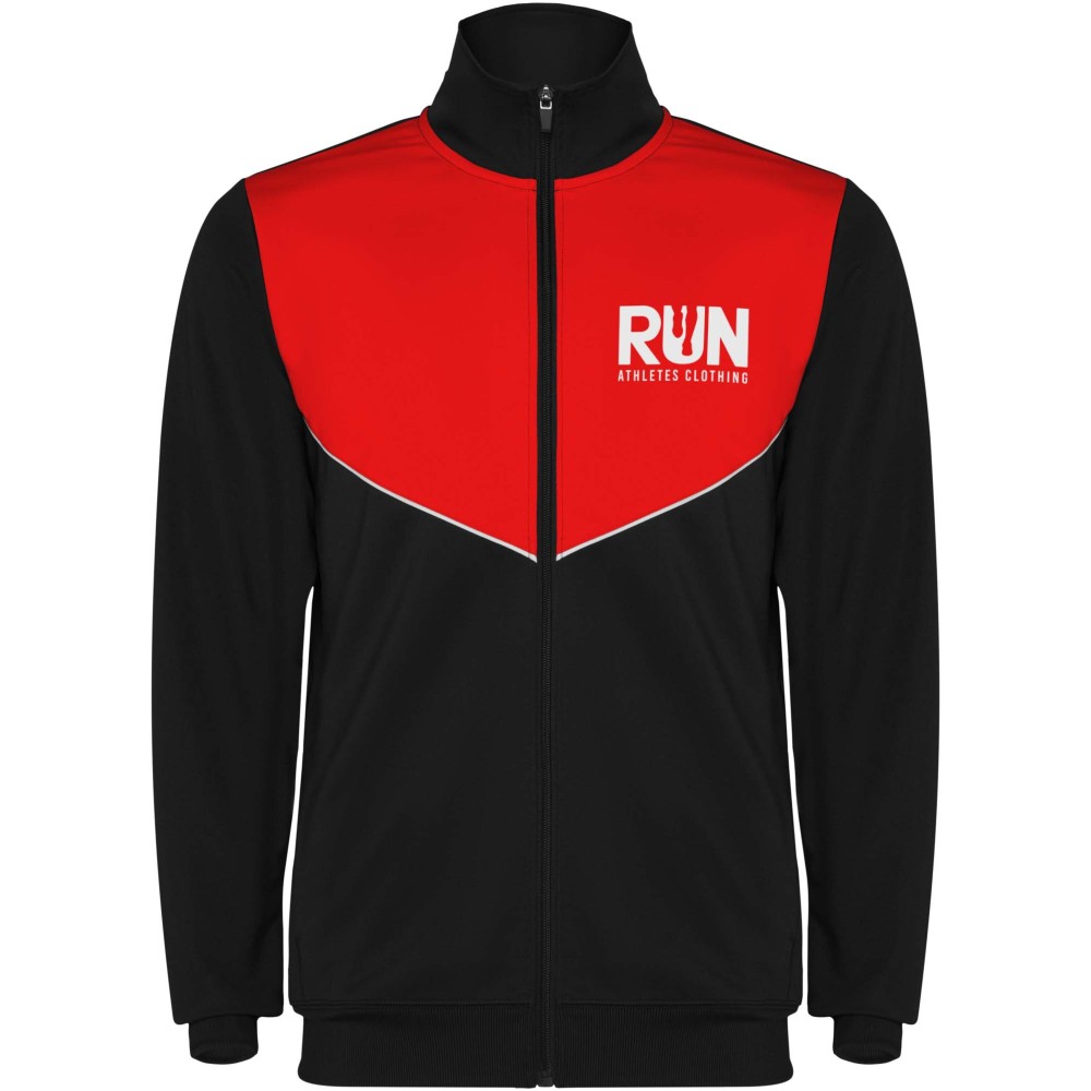 Könnyű és rugalmas anyagból készült melegítő. A végig cipzáros felső kontrasztos színű és varrású díszítésekkel dekorált a mellrészen. Oldalzsebek. Bordázott ujj- és és derékpasszé. Nadrág gumis derékkal és húzózsinórral, kontrasztos oldalsó varrással. Cipzáras szegély.