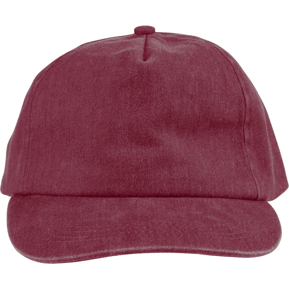 5 paneles baseballsapka 240 g/m2 vászon anyagból, koptatott hatású kivitelben, 7 cm-es ellenzővel, fémcsattal állítható pánttal. Bélés nélkül.