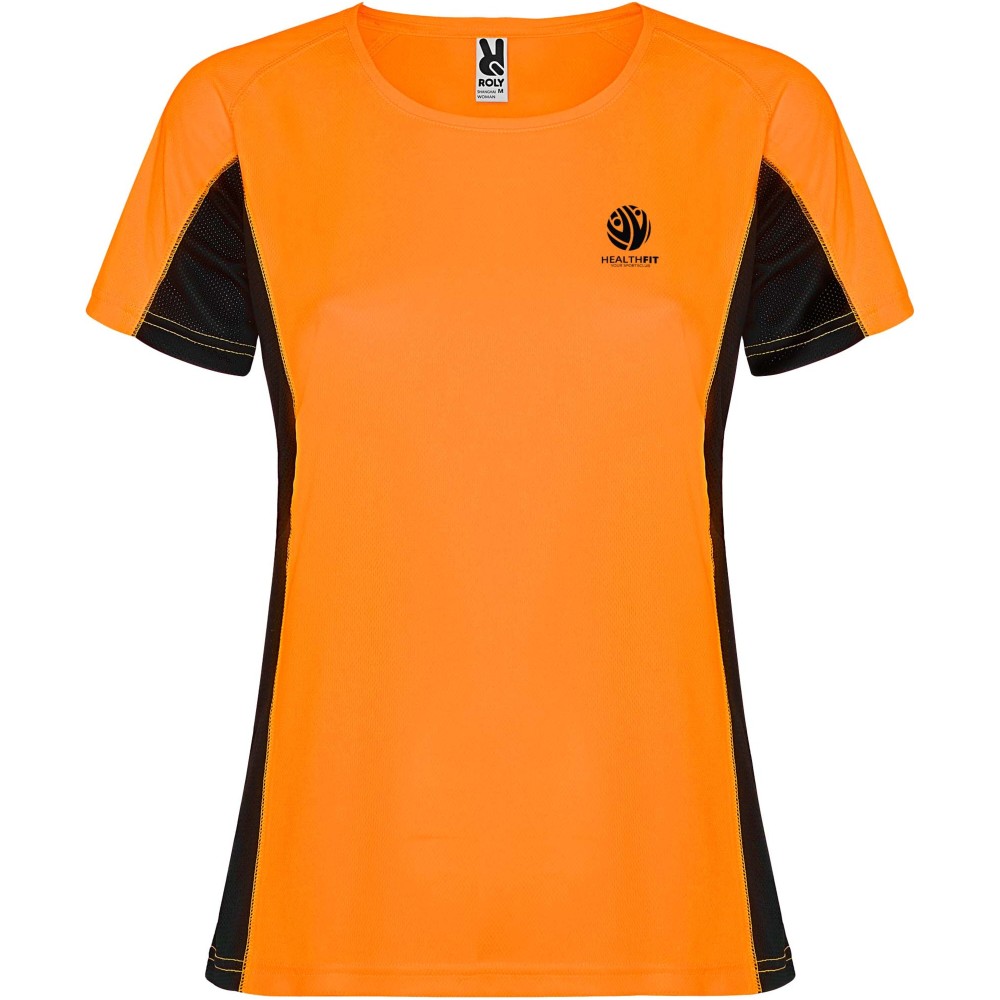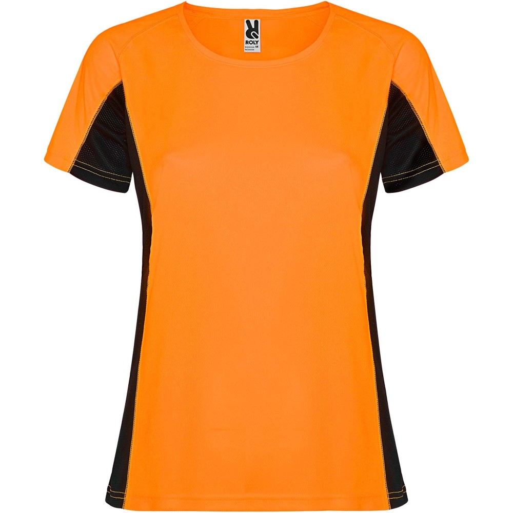 Shanghai rövid ujjú női sportpóló, fluor orange, solid black