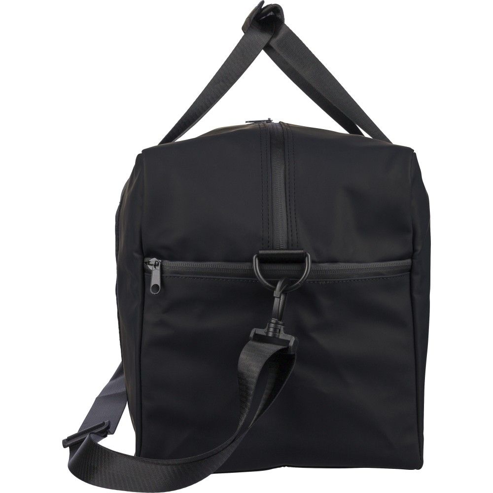 Újrahasznosított PU anyagból készült sporttáska 35 literes űrtartalommal, 210D újrahasznosított poliészter béléssel. 108 cm hosszúságú és 2,5 cm szélességű fogantyúval rendelkezik tépőzáras rögzítéssel, valamint 130 cm hosszúságú és 3,9 cm szélességű állítható vállpánttal. Elülső cipzáras zsebbel és nagy fő rekesszel készül. A belső címkén újrahasznosított alapanyagra utaló logó található.