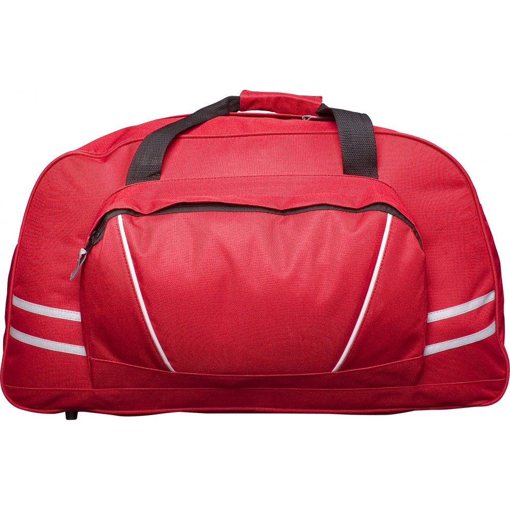 Sport- és utazótáska nagy első zsebbel, fényvisszaverő csíkkal, vállpánttal. 600D poliészter.